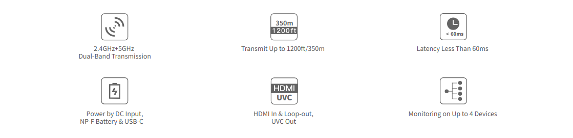 through Accsoon’s uniquely patent Dual-Band (2.4GHz + 5GHz) transmission technology. And its brand